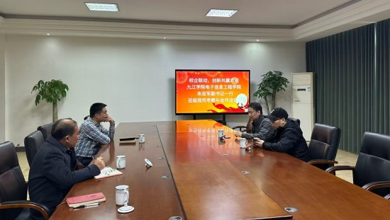 为加强校企联系,探索产教融合新路径,12月4日下午,学院党委副书记朱亚军、办公室主任吴华杰一行,应邀前往江西盛祥电子材料股份有限公司走访调研。公司总经理蒋鸿斌、行政人事部部长于陈兵、徐丹等热情接待并参与交流。