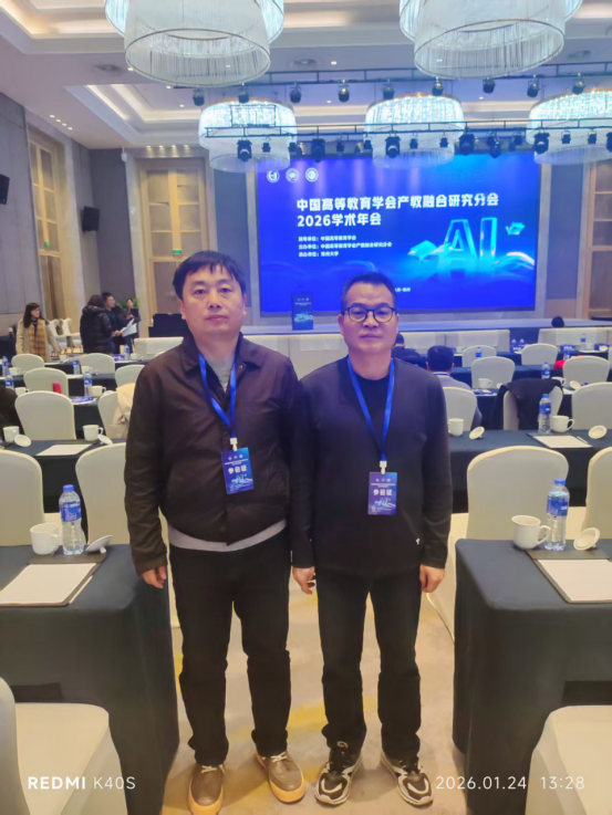 1月24日,中国高等教育学会“产教融合研究分会2026学术年会”在江苏省常州市举办。会议由中国高等教育学会指导、产教融合研究分会主办、常州大学承办,本次年会以“人工智能发展背景下的产教融合探索与实践”为主题,汇聚了全国高校相关负责人、企业代表及专家学者300余人。我院教师樊红社、舒彤受邀参会。