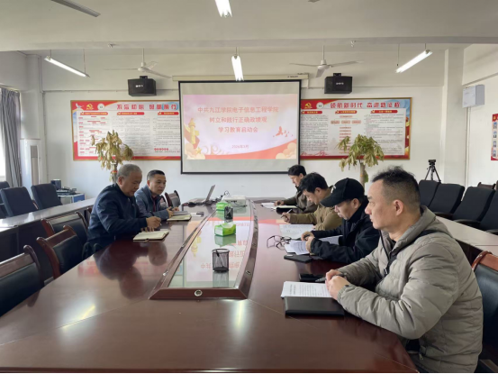 为深入贯彻落实中央及学校党委关于开展树立和践行正确政绩观学习教育的工作部署,引导全院党员干部、教职工党员牢固树立和自觉践行正确政绩观,3 月13日,中共九江学院电子信息学院党委召开树立和践行正确政绩观学习教育启动部署会。学院党委班子成员参加会议、党支部书记列席会议,会议由学院党委书记汪傧主持。