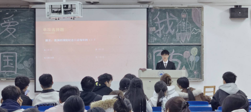 为增强活动的互动性与教育实效,比赛在中场特别设置了国防知识竞答环节。主持人围绕国防历史、军事常识、国家安全等主题提出问题,现场观众与参赛选手踊跃抢答,气氛热烈非凡。这一寓教于乐的环节不仅活跃了现场氛围,更在潜移默化中普及了国防知识,将活动推向了第一个高潮。随后,其余选手接续登台,他们用铿锵有力的语言抒发爱国情怀,用真挚饱满的情感诠释青年担当。从对英雄的缅怀到对未来的展望,每一句演讲都饱含着新时代青年对祖国的赤诚之心与报国之志,充分展现了电子信息工程学院学子昂扬向上的精神风貌。