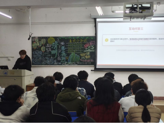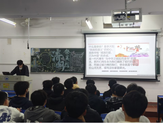 班会上,各班团支书化身“红色宣讲员”,带领同学们穿越历史的烟云,追溯清明的文化渊源与革命先烈的英勇事迹。从“砍头不要紧,只要主义真”的夏明翰,到“清澈的爱,只为中国”的陈祥榕,一段段感人至深的故事、一幕幕震撼人心的影像,将同学们的思绪带回了那段激荡的革命岁月。大家通过观看红色纪录片、诵读英烈家书等形式,深刻感悟先烈们为民族独立和人民解放抛头颅、洒热血的崇高精神,深切体会到英烈精神是中华民族永不磨灭的精神丰碑。